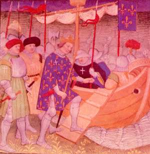Saint Louis (Louis IX) réunit ses chevaliers à Paris pour préparer sa deuxième croisade en Terre Sainte.